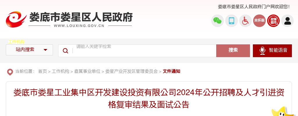 娄底市娄星工业集中区开发建设投资有限公司2024年公开招聘及人才引进资格复审已结束,现将资格复审结果及面试相关事项公告如下: