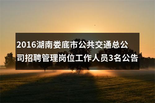 因工作需要,娄底市公共交通总公司面向社会公开招聘管理岗位工作人员3名。现公告如下: