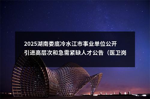 原标题:冷水江市2025年事业单位公开引进高层次和急需紧缺人才公告
